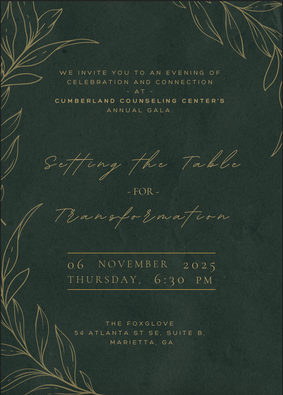 At Cumberland Counseling Centers, we are on a mission to revolutionize how mental health care is accessed. We believe high-quality counseling should be available to every person, regardless of income. But we cannot do this alone. That’s why our upcoming Gala is first and foremost a fundraiser to expand access, and ensure no one is turned away because of cost. We need your support to make this vision possible.